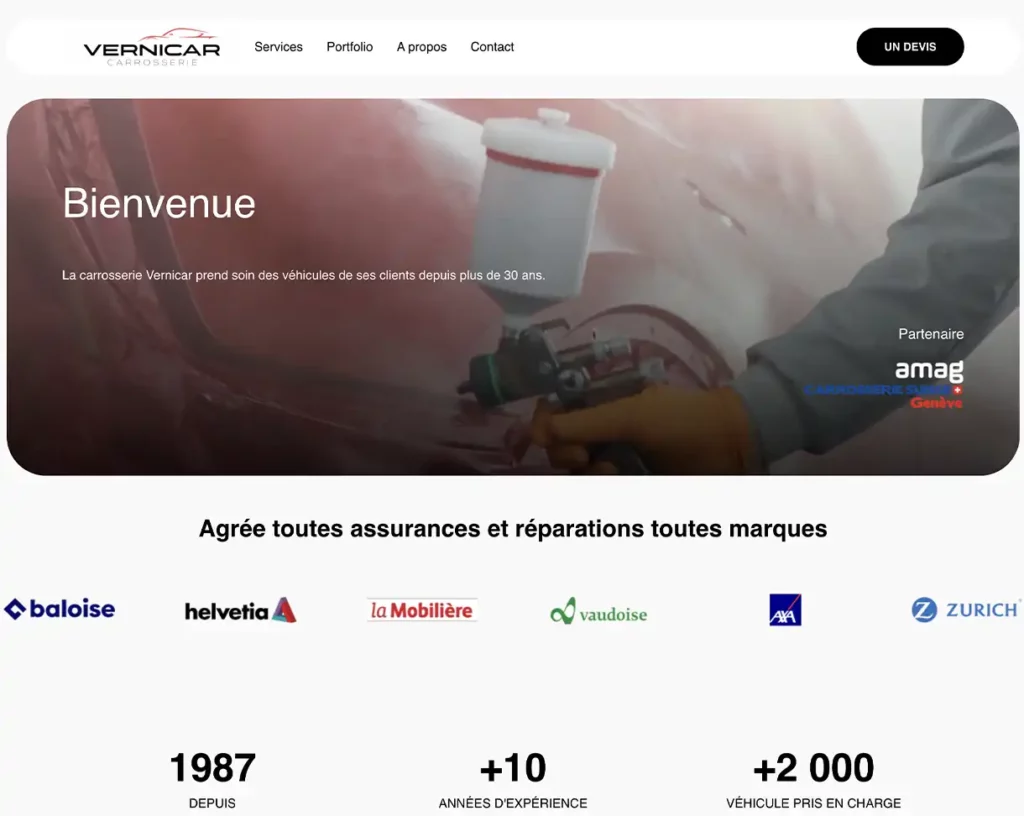 On est une carrosserie depuis 30 ans. My Com Swiss nous a accompagnés avec patience, en traduisant notre savoir-faire en quelque chose de moderne et lisible. On reçoit maintenant des demandes de devis directement depuis le site.